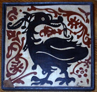 Socarrat El dragon, realizado sobre azulejo artesano, con engobes y marco de hierro.