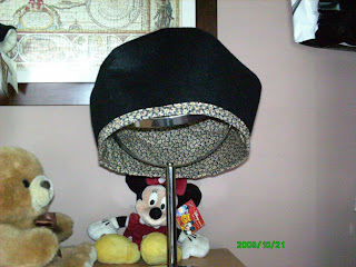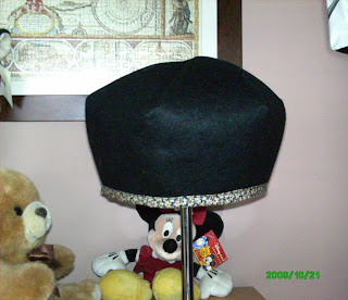 Esta es gorra que he sacado de una revista de Tilda, el exterior es de fielto negro y en el interior le puse una tela de florecitas con el fondo negro. ¡¡ Me gusta el resultado!!