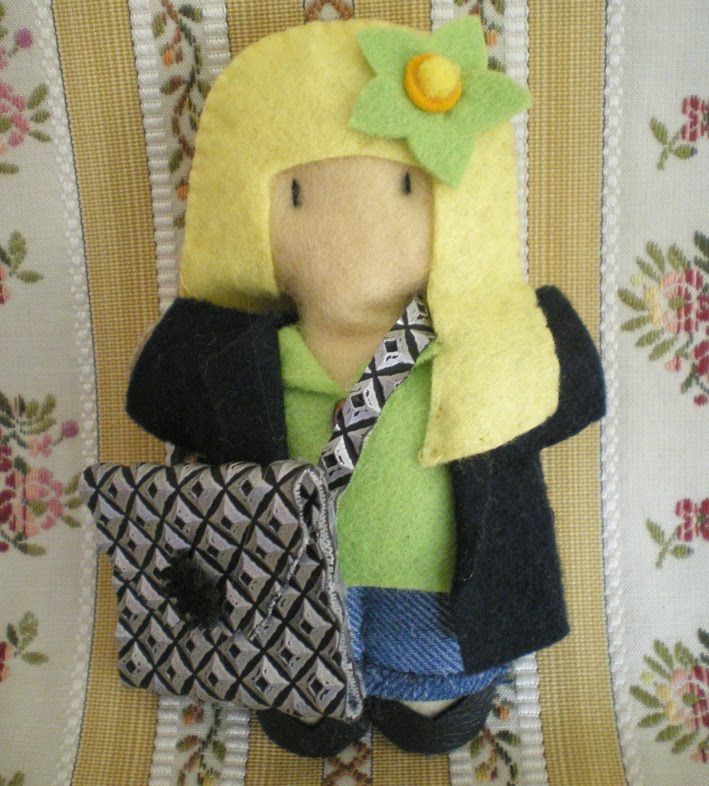 Las dos estan hechas totalmente a mano con fieltro y los bolsos son de polipiel, miden 12x6