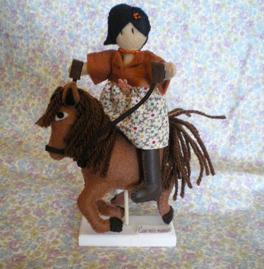El caballo está hecho con fieltro y lana.