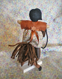 La muñeca se sujeta al caballo con velcro, asi se puede poner depie o subida a él.