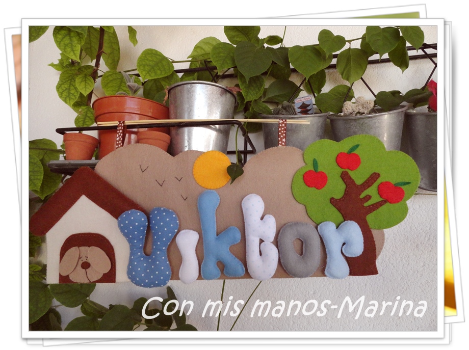 Viktor vive en el campo con sus papas y sus perritos, así que su decoración no podía ser otra, la caseta con el perrito y el árbol llenito de manzanas.
