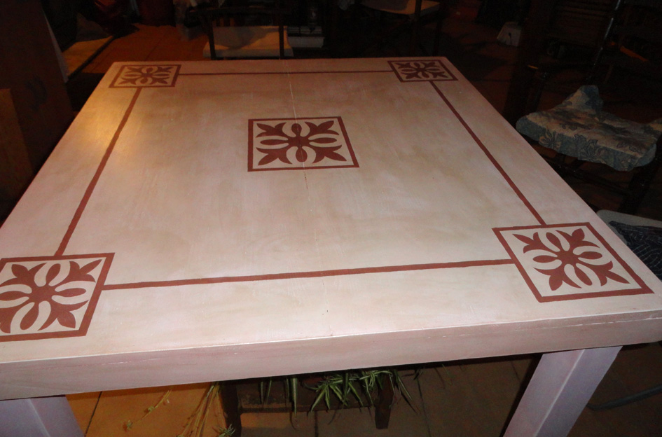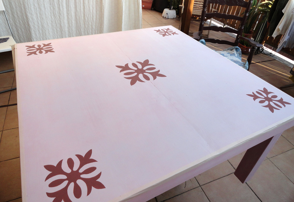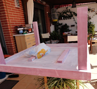 Queda un poco rosita porque estaba pintada con tinte y aunque lo intentamos quitar todo cuando pintabas, salia el rojo, pero con la patina final me gusta como queda el resultado.