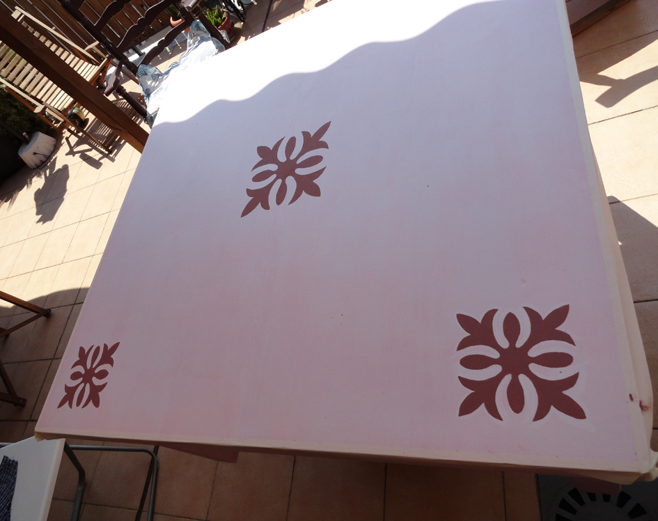 Lo del estarcido.....no, tengo que seguir practicando, al final la pinté a mano.