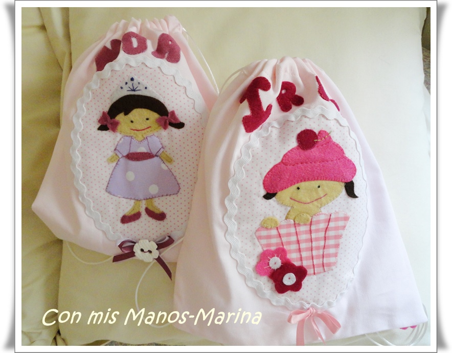 Que monada de bolsitas, preciosos los colores y el diseño, que nena no estará encantada de llevarla.Un beso
