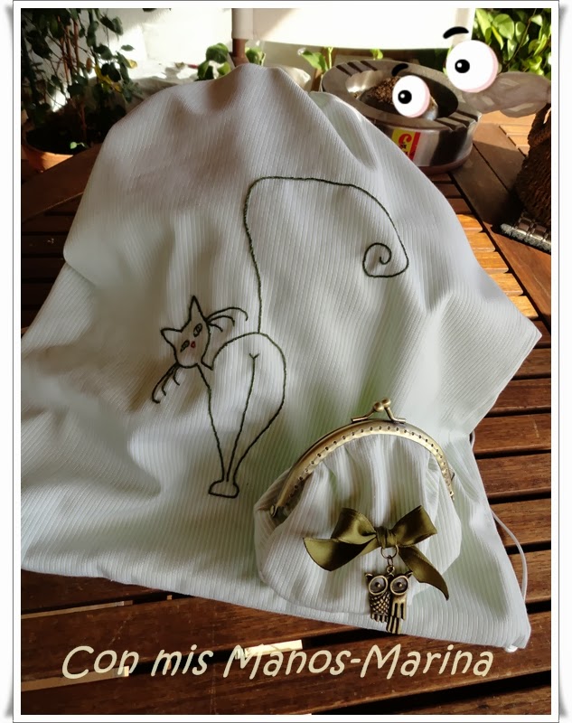 El monedero tiene base para mayor comodidad y lleva como adorno un lacito y un buho como colgante.