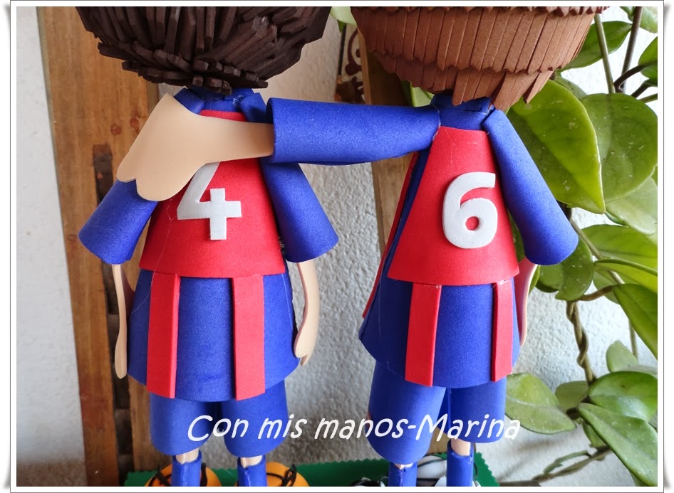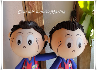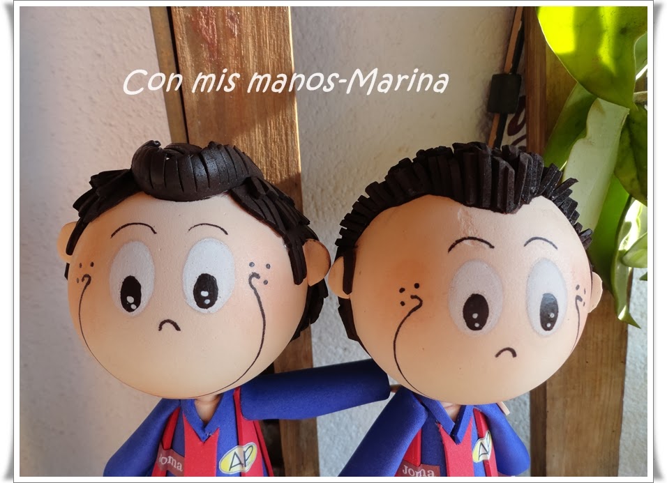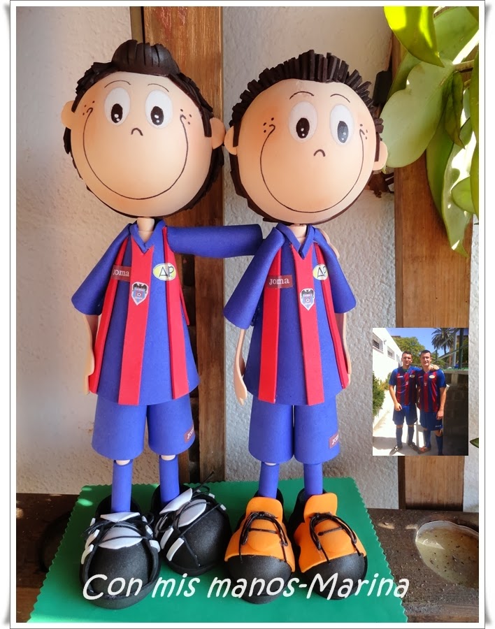 A la Doctora le gustó tanto su fofucha personalizada, que como regalo de Papa Noel, me pidieron que les hiciera a sus hijos, dos futbolistas del Club Los Imposibles de Valencia. Tal cual estan en la foto.
